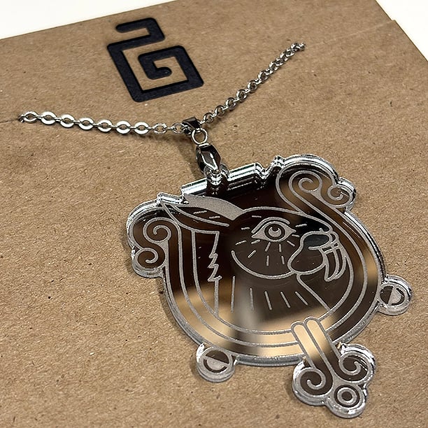 necklace design made from 1/8" silver mirror acrylic with stainless steel chain and stainless steel necklace pinch bail