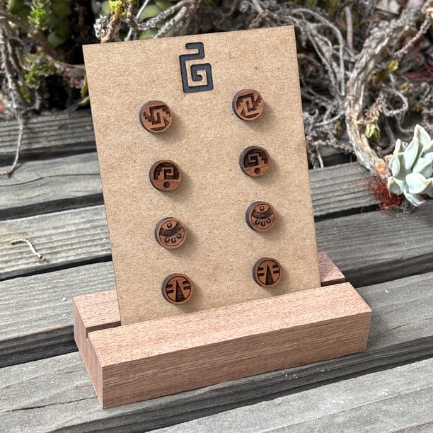 4-set mini stud earring designs made from 1/8" walnut wood planks