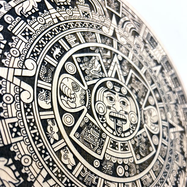 this famous calendar stone is a brilliant combination of artistry and geometry. it reflects the aztec understanding of time and space. the detailed surface of the stone combines the understanding of the gods the people had created over the centuries as well as their observations of the heavens