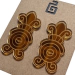 xochitl glyph stud earring design made from 1/8" gold mirror acrylic. xochitl is the nahuatl translation for flower. xochitl is also associated with concepts of beauty, love, and the cycle of life
